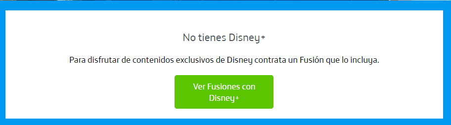 Si tu tarifa no incluye Disney+ te saldrán el siguiente cartel.