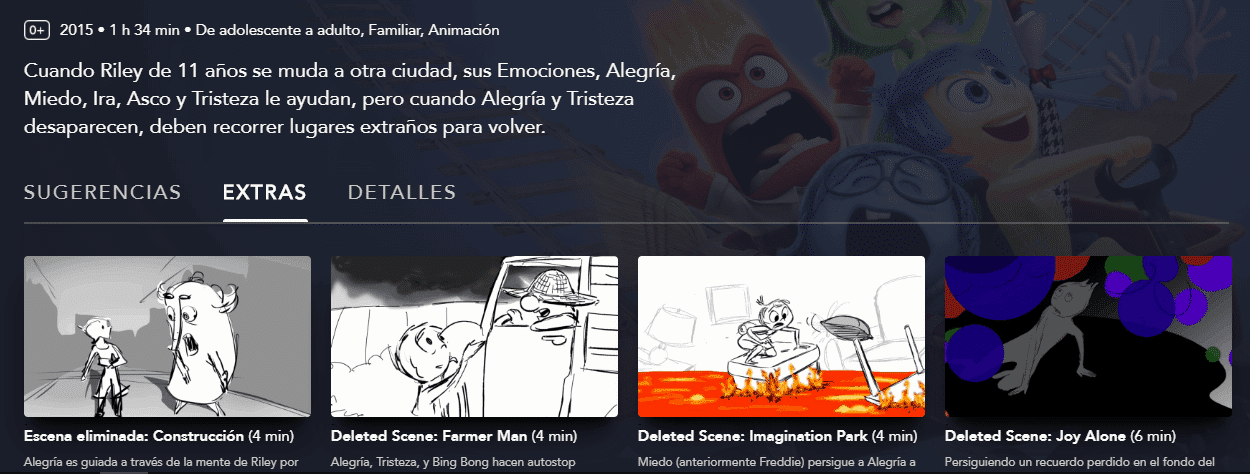 Algo que nos ha impresionado bastante es la inclusión de contenido extra en muchas de las películas y series ofrecidas. Por ejemplo podemos ver contenido que no se ha llegado a incluir finalmente, making offs, escenas eliminadas, canciones que no se han usado, etc… Los extras aparecen justo debajo de la descripción.