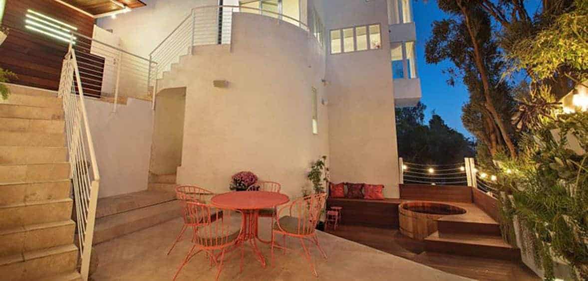 La casa no se queda corta en nada. Tiene piscina, cinco baños, cuatro habitaciones, amplios jardines, dos plazas de garaje y vistas a la montaña entre otras muchas características. Por supuesto no le podía faltar un estudio, ya que esta casa pertenecía al productor y compositor Tom Rothrock.