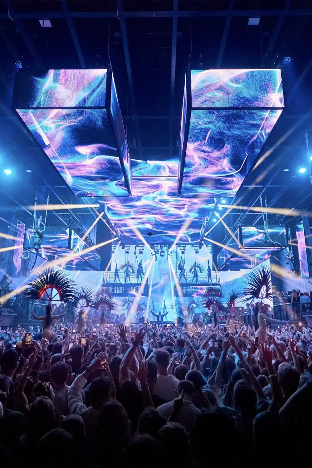 UNVRS Ibiza, inaugurado en mayo de 2025, representa el nuevo paradigma. El «primer hyperclub del mundo» ocupa el solar del antiguo Privilege con capacidad para 10.000 personas, sistemas de iluminación inteligente, pantallas transparentes y sonido L-Acoustics a medida. Creado por Yann Pissenem (fundador de The Night League, la empresa detrás de Hï Ibiza y Ushuaïa), cuenta con residencias de Carl Cox, Eric Prydz, Anyma, David Guetta y FISHER. En su temporada de debut fue nombrado club número 1 del mundo por la International Nightlife Association.