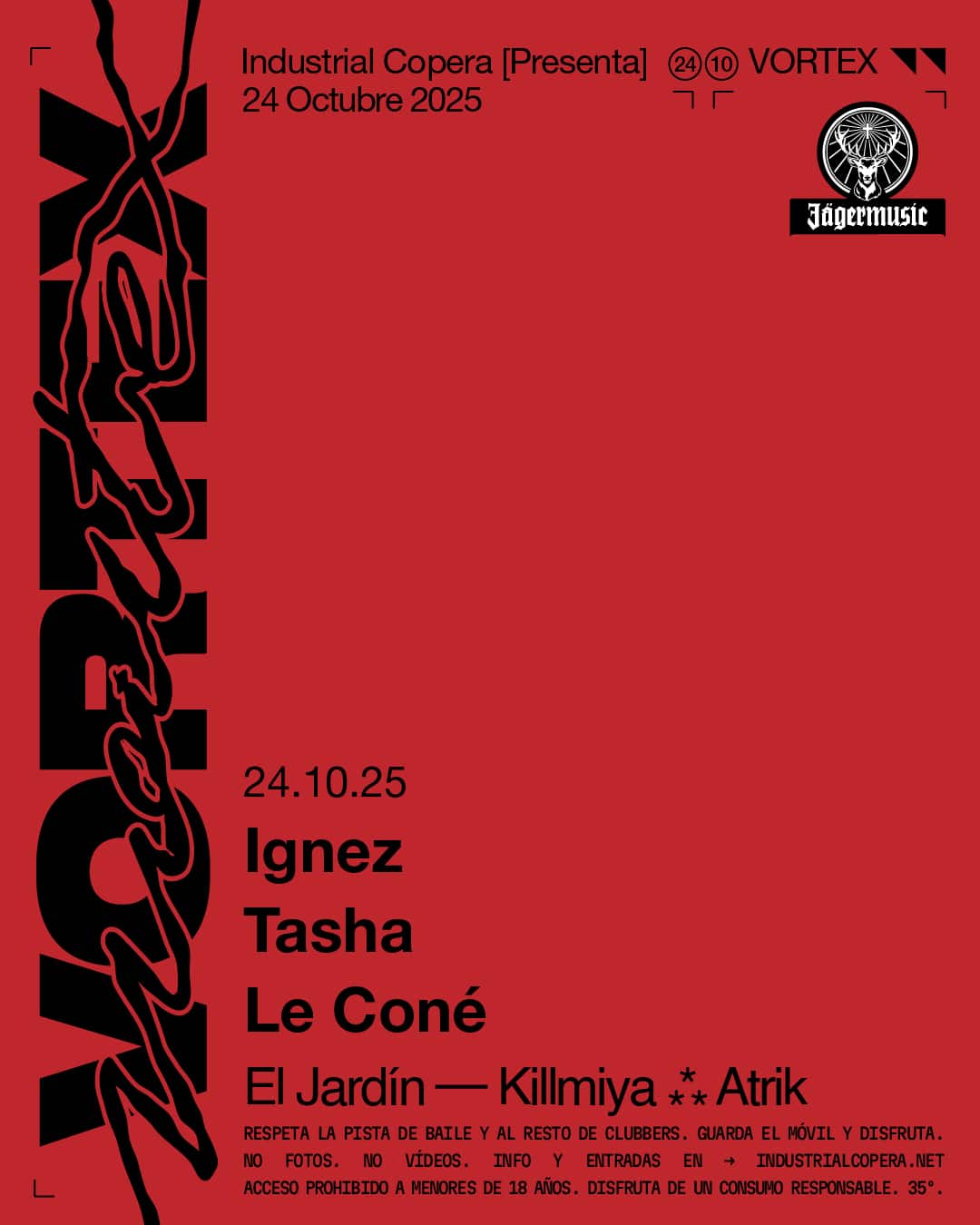 El ciclo Vortex, uno de los proyectos más reconocidos de la sala, regresará el viernes 24 de octubre con un cartel encabezado por IGNEZ. Este artista neerlandés, fundador del sello Somov Records, se ha distinguido por un sonido hipnótico y orgánico que ha conquistado a los seguidores del techno más sofisticado. Su presencia en Industrial Copera confirma la conexión internacional del club con las tendencias más actuales.