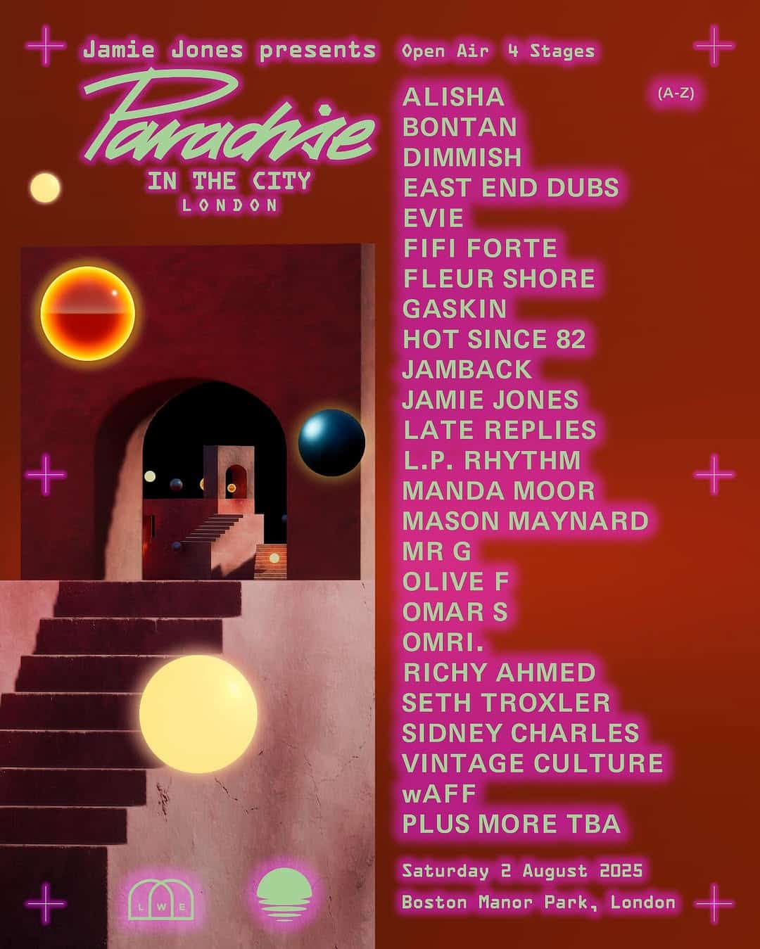 Jamie Jones da un paso más en la expansión de su icónica marca Paradise con el lanzamiento de Paradise in the City, su primer festival al aire libre a gran escala en el Reino Unido. La cita tendrá lugar el próximo 2 de agosto de 2025 en Boston Manor Park, Londres, y contará con un cartel de primer nivel que reúne a grandes figuras del house y techno internacional.