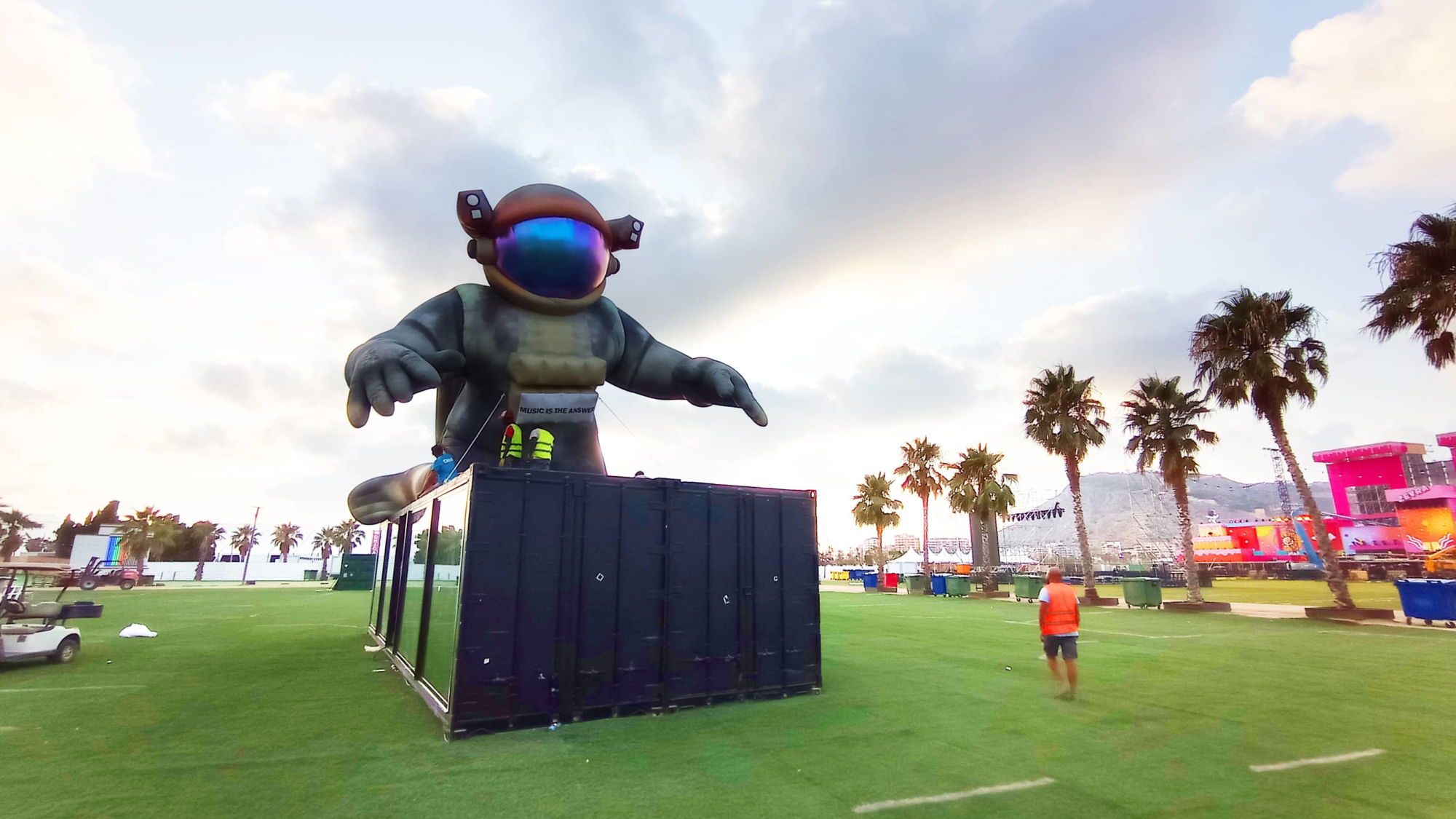 Ubicado en el corazón del recinto del festival, The Club es un cubo acristalado de aproximadamente 50 metros cuadrados. Este pequeño espacio estará coronado por un astronauta hinchable, visible desde cualquier punto del festival, aunque su instalación dependerá de las condiciones del viento.