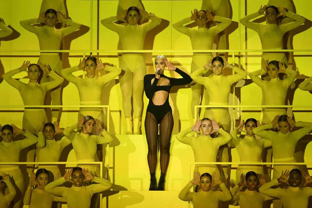 Sobre el escenario hemos podido ver a Dua Lipa en primer lugar, con la primera performance de su nuevo single «Don’t Start Now«. Rodeada de bailarinas vestidas de amarillo y con un body totalmente negro, la artista ha defendido con mucha soltura su nueva canción sobre el escenario.