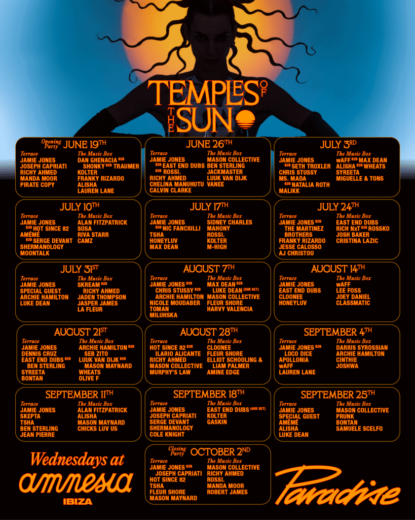 La temporada 2024 en Ibiza arranca motores. Y lo hace con muchas propuestas muy interesantes. Hoy te contemos una de ellas. La que trae Jamie Jones a Amnesia Ibiza. Cada miércoles, del 19 de junio al 2 de octubre, la discoteca se transformará en un templo de sonido y baile, este año bajo el concepto Temples of The Sun.