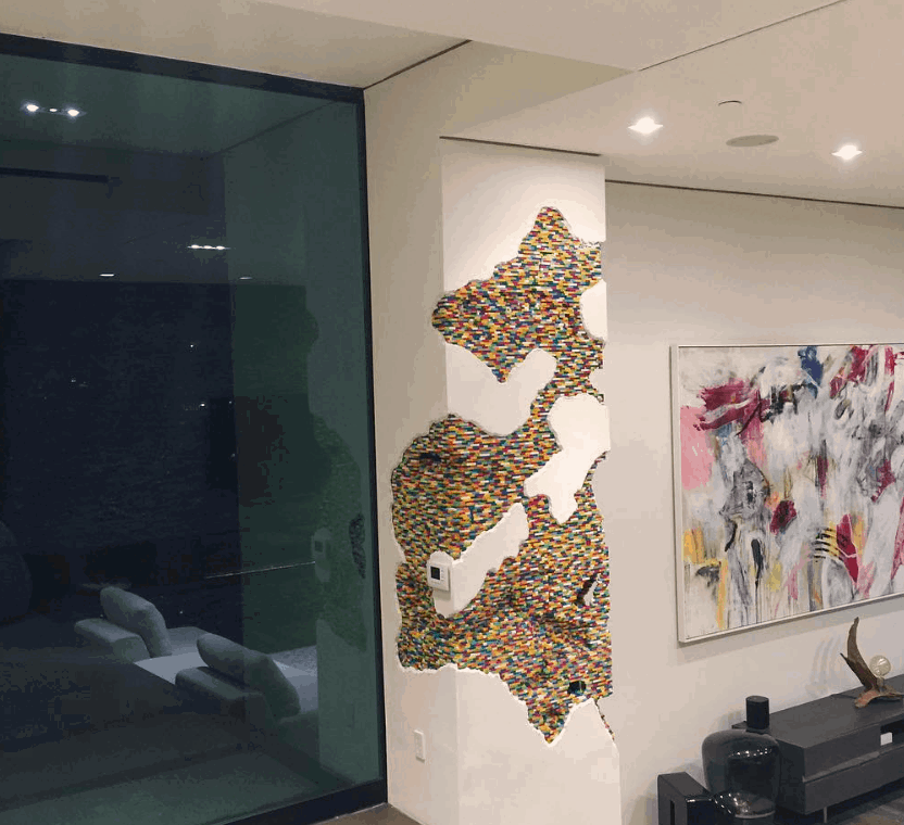 Pues parece que la decoración se le ha quedado anticuada que ha decidido cubrir una de sus columnas con LEGO. El DJ ha querido contar con el arquitecto Dante Dentoni, un hombre que es especialista en crear mega construcciones de LEGO. Muchas son las creaciones que Dante Dentoni ha realizado pero nunca una como esta, ya que incluso tiene puertas ocultas, lucecillas y de todo!
